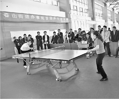 社区居民在社会管理服务工作中心参加青春山街道首届乒乓球大赛。