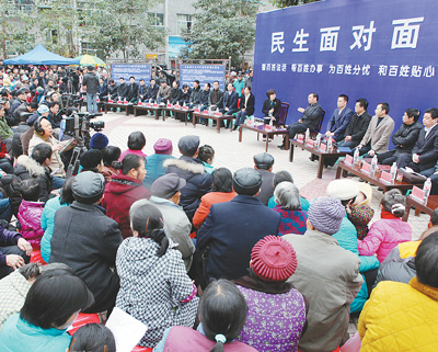 2011年3月25日,重庆市云阳县“民生面对面”活动现场,百姓与干部进行互动交流。刘 洋摄