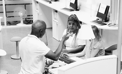 在巴黎郊区的一处就业中心内,一名男青年正在咨询就业问题。