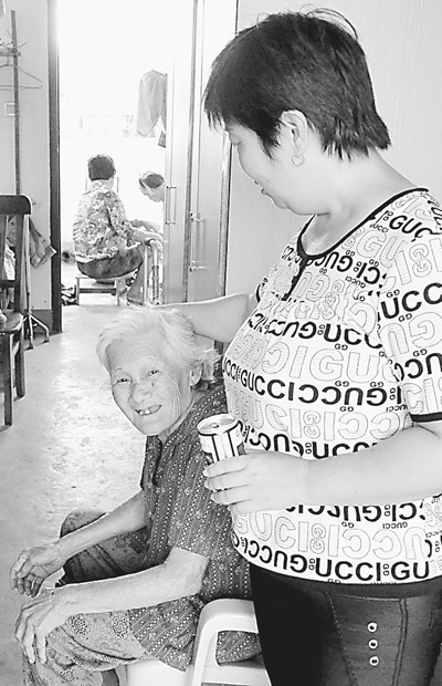 海口市三江镇敬老院,护工何阿姨和老人聊天。 本报记者 黄晓慧摄