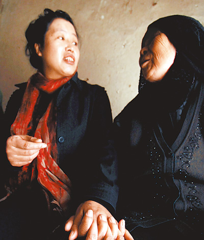 陈风莲(左)与社区居民聊家常。 新华社记者 王 博摄